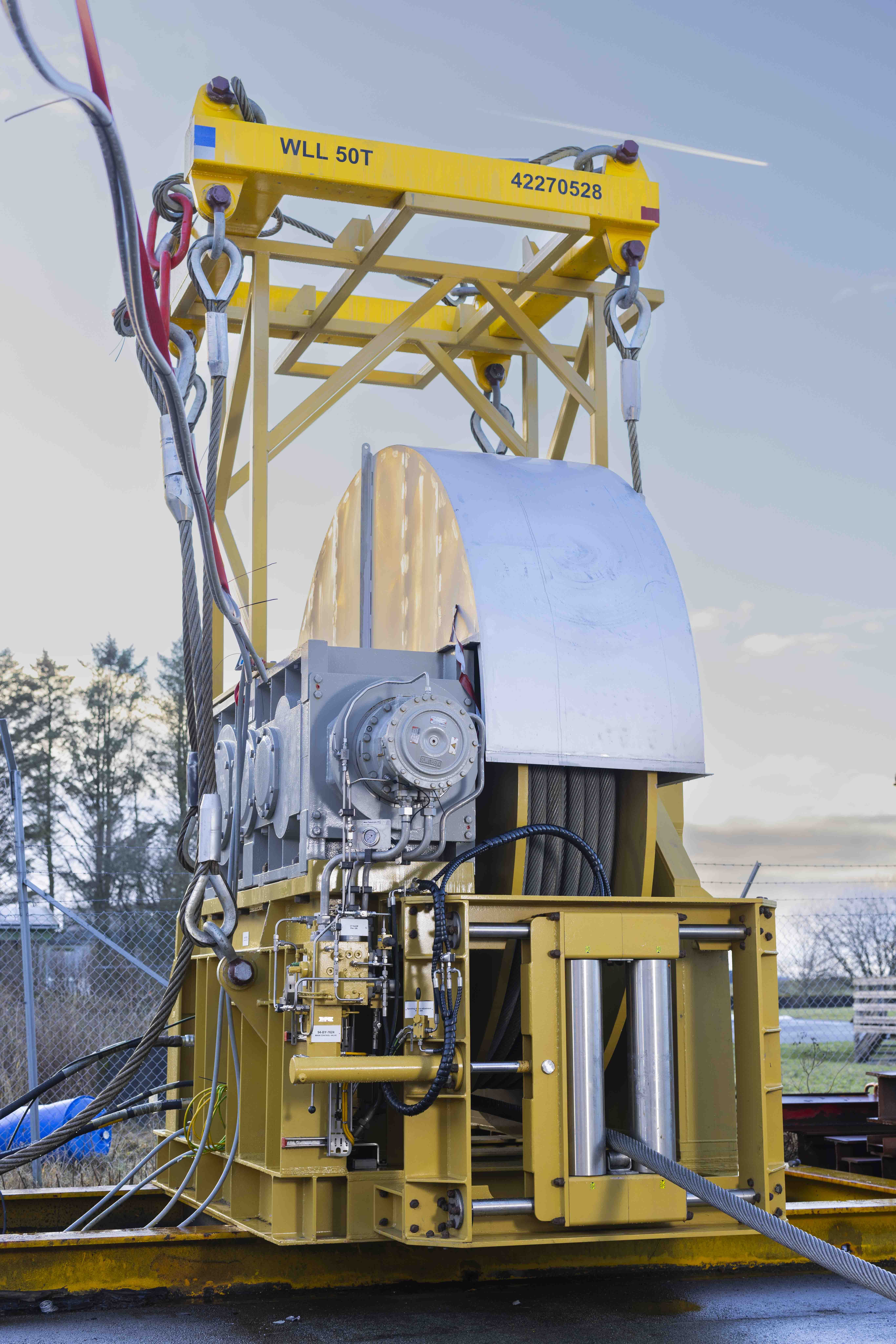 HV20 vinsjen (avbildet) full integrert med en 𝟐𝟖𝟎-𝐭𝐨𝐧𝐧𝐬 𝐥𝐢𝐧𝐞æ𝐫𝐯𝐢𝐧𝐬𝐣 i ett skivearrangement med robust 100 mm wire. Systemet er utviklet i fullt samsvar med 𝐍𝐨𝐫𝐬𝐨𝐤 𝐑-𝟎𝟎𝟐 og tredjepartsverifisert av DNV – noe som sikrer maksimal sikkerhet, pålitelighet og operasjonell ytelse.